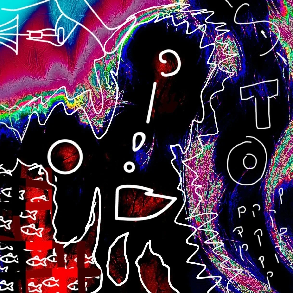 A fractured language of color and code. Codex Error unfolds like a corrupted manuscript, symbols stutter, signals misfire, and meaning flickers between creation and collapse. The work reimagines communication as both sacred and unstable, a transmission caught in perpetual translation.